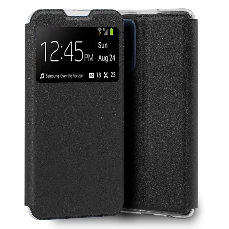Apertura lateral tipo libro. Incorpora una carcasa específica del modelo de smartphone, para incrustarlo y dejarlo perfectamente encajado.