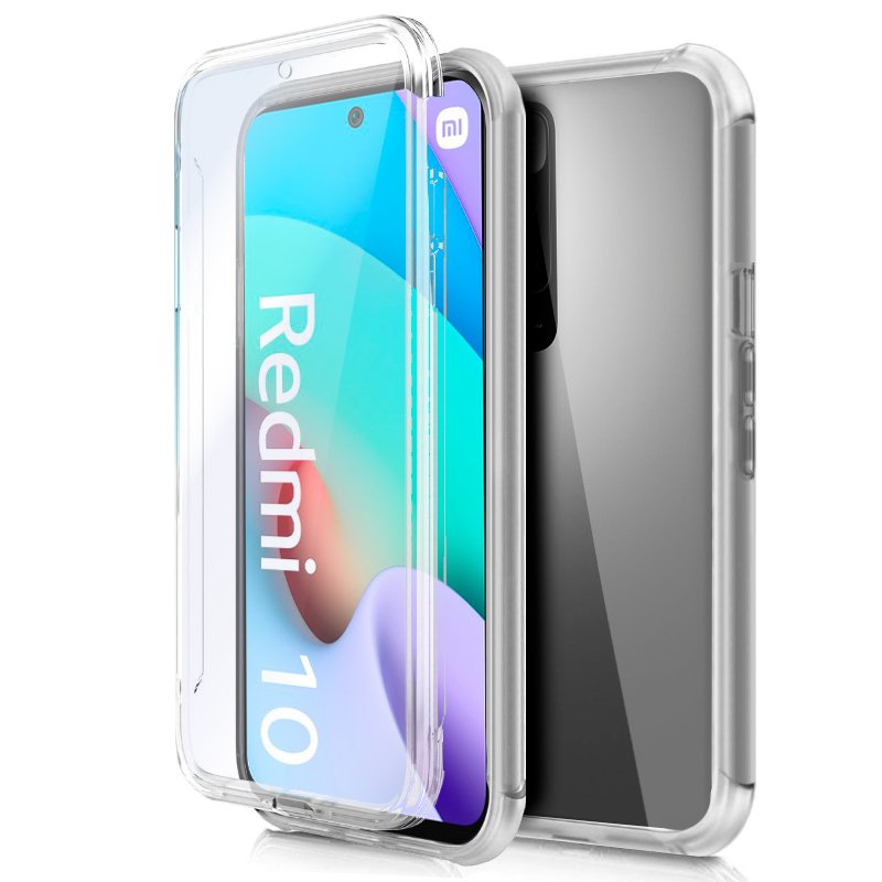 Funda resistente para móvil, de tipo transparente, silicona semirígida 360º, cubre parte frontal y trasera del smartphone.