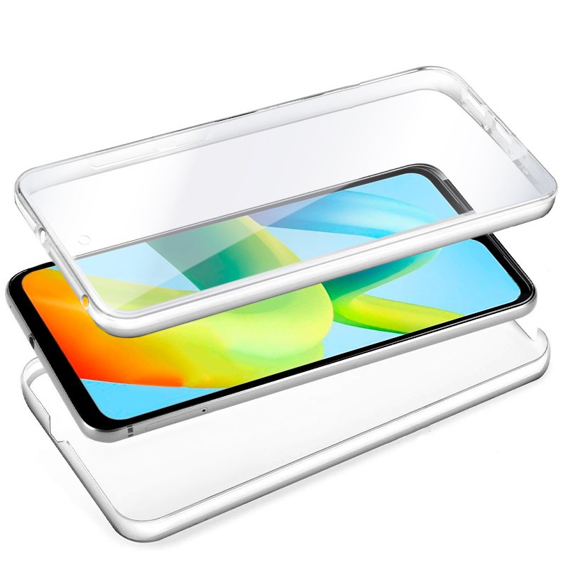 Funda resistente para móvil, de tipo transparente, silicona semirígida 360º, cubre parte frontal y trasera del smartphone.